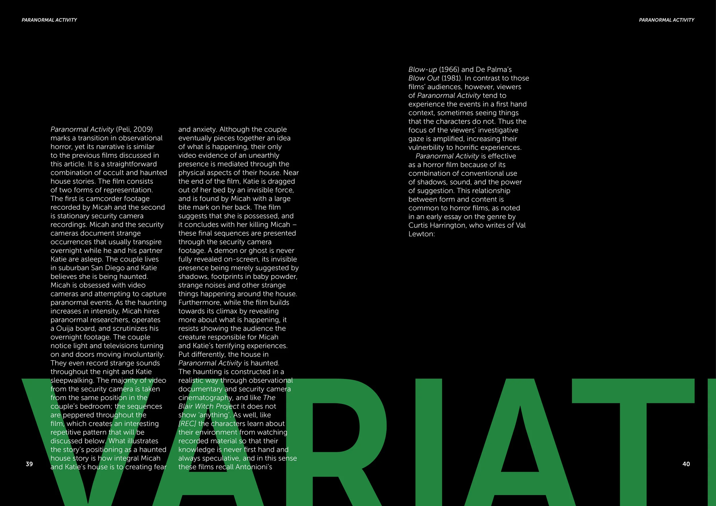 Based on a document written about cinematic techniques in horror/thrillers films, this publication was designed to invoke elements of mystery and suspense.